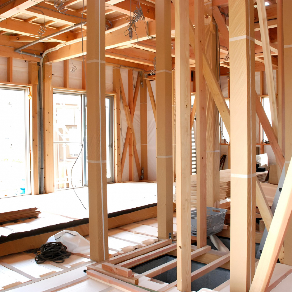 いよいよ工事のスタートです。地盤調査や地鎮祭、近隣への工事の挨拶などを経て、お施主さまの住まいがカタチになっていきます。基礎工事から住まいに必要な各種設備の工事など、創陽と熟練の職人たちでチームを組んで進めていきます。