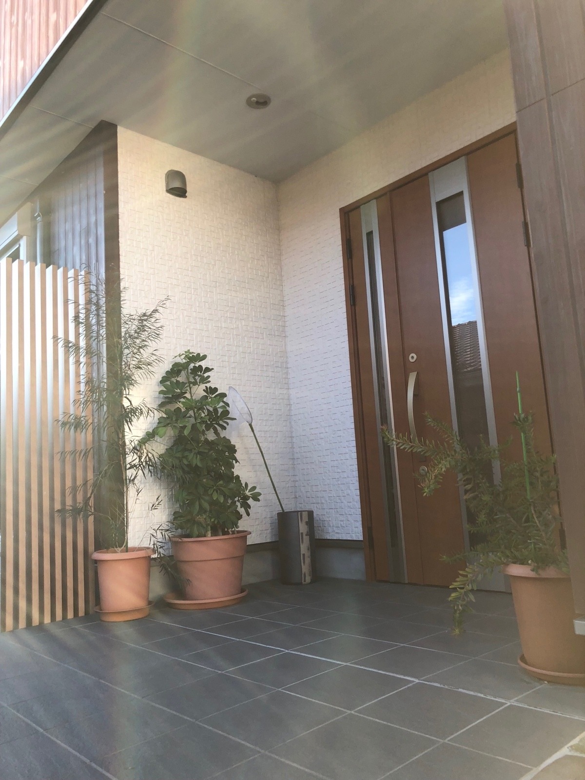 シンプルモダンにマットな素材感が調和するパティオのある家