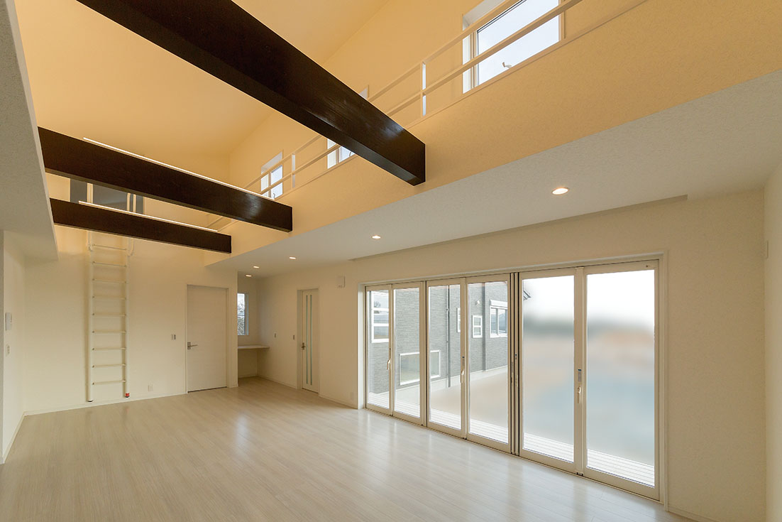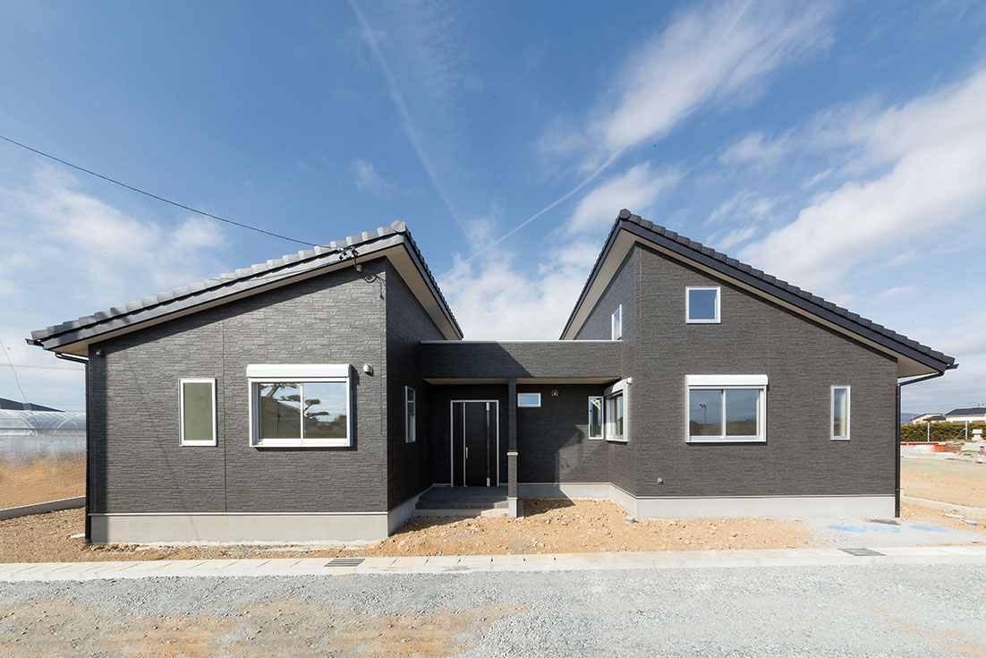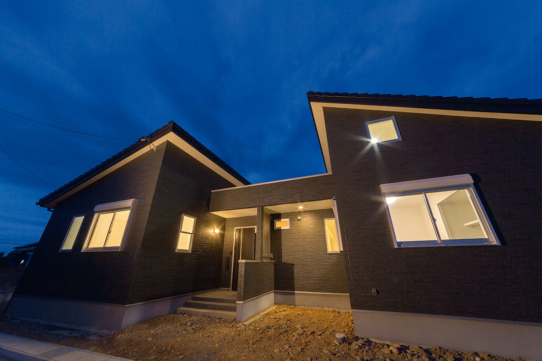 外壁は黒、内部仕上げは白を基調にモノトーン色調で仕上げました。