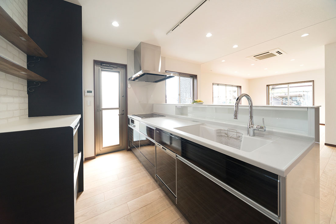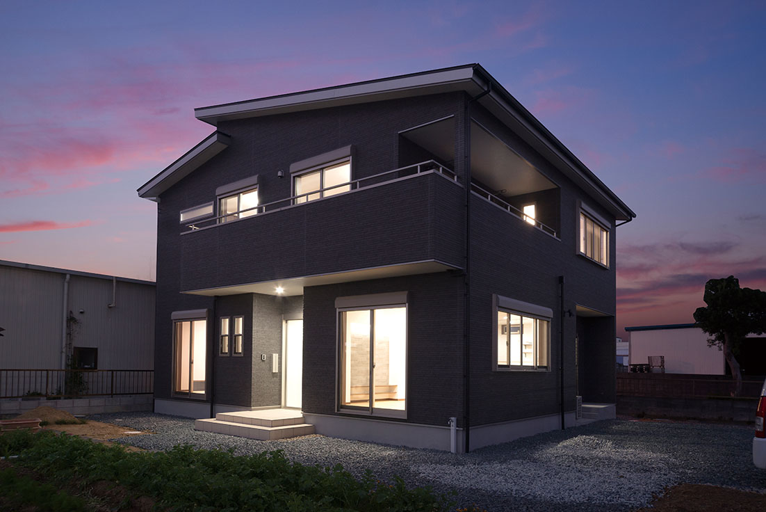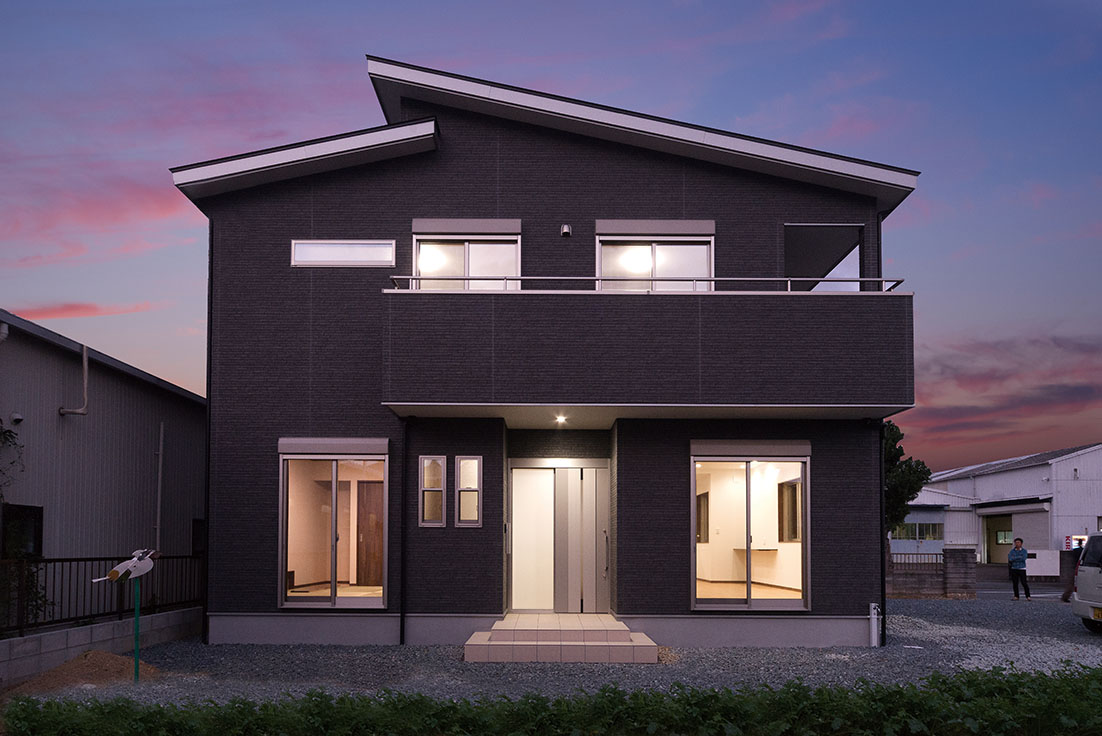 見る角度によって表情を変える勾配屋根が特徴の、スタイリッシュなブラックボックス。徹底的に区間を活かし、ウォークインクローゼット、小屋裏収納、パントリーなど理想の収納力を実現しました。 家事動線を考えた間取りも必見です。デザイン性と暮らしやすさの両立にこだわった、才色兼備なお家です。